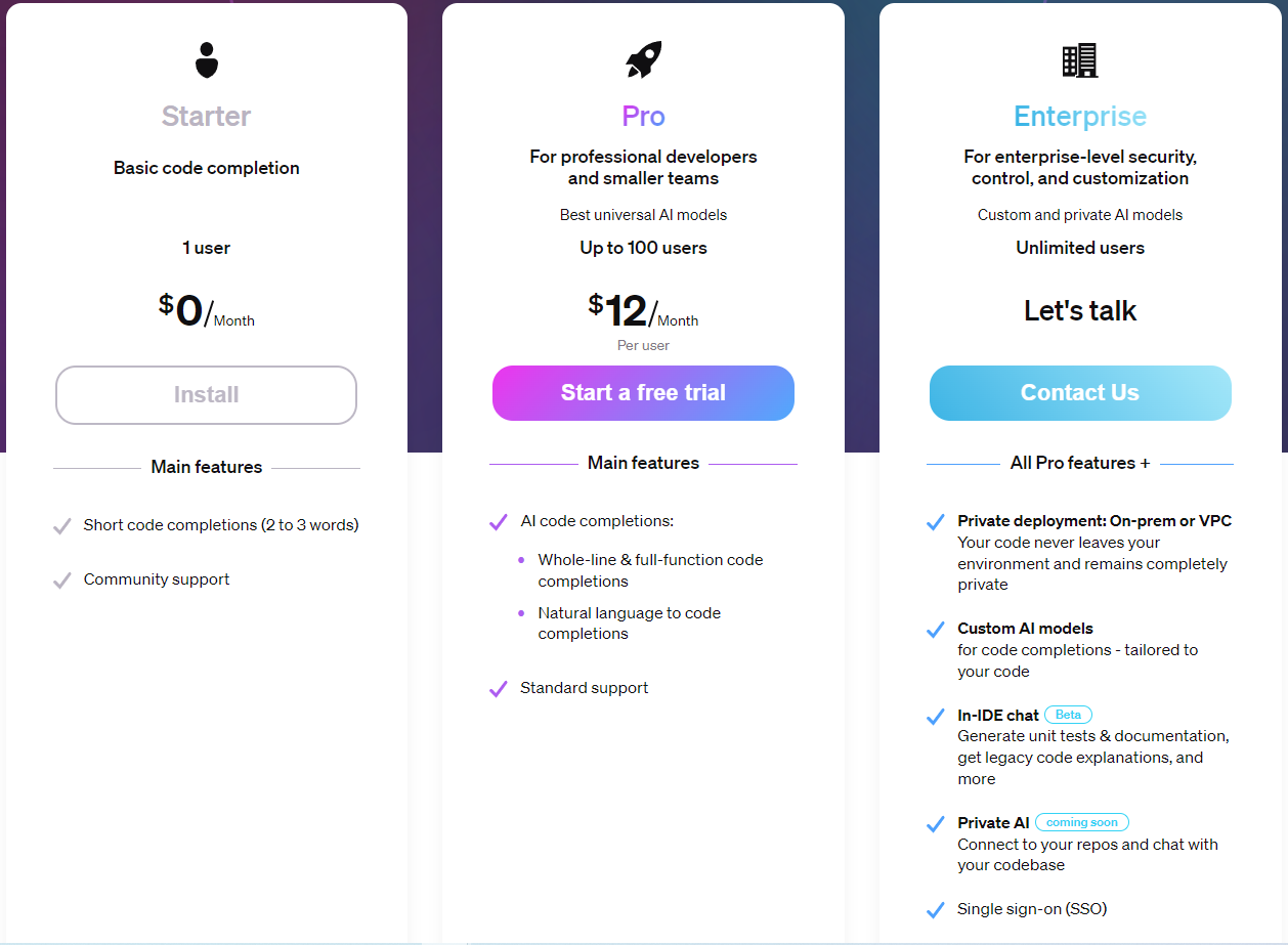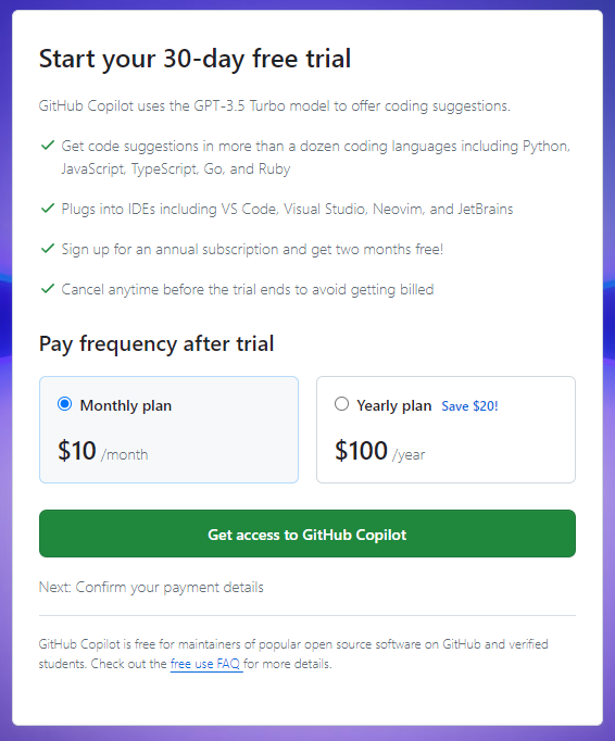 반면 유료는 월 12달러의 비용이 들며 더 긴 완성된 코드를 제안합니다.