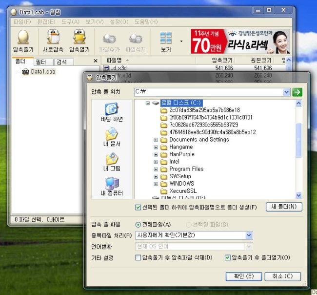 v3 zip, 7 zip 등의 압축프로그램을 깔아서 풀어보십시오.