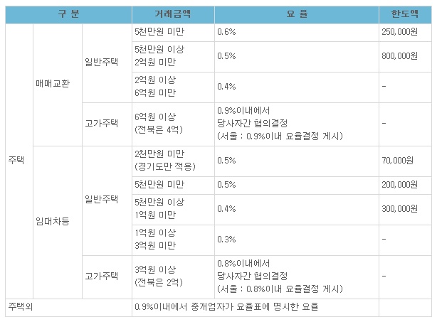 이 때문에, 정부에서는 "중개수수료 요율표"를 정해 놓았습니다.