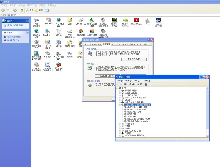 "제어판 - 시스템 - 하드웨어 - 장치관리자"에 들어가면 사운드,비디오 및 게임컨트롤러 쪽에 노란색 느낌표가 있나요~?