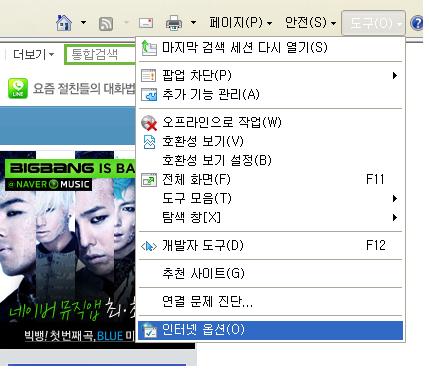 먼저 도구 - 인터넷옵션에 들어가시구요.