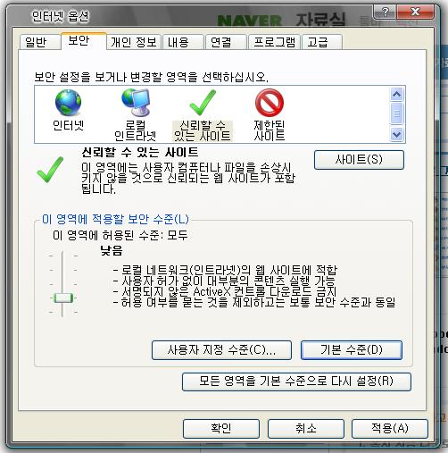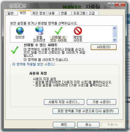 그리고, 그 후 신뢰할 수 있는 사이트의 등급을 설정해주시기 바랍니다.