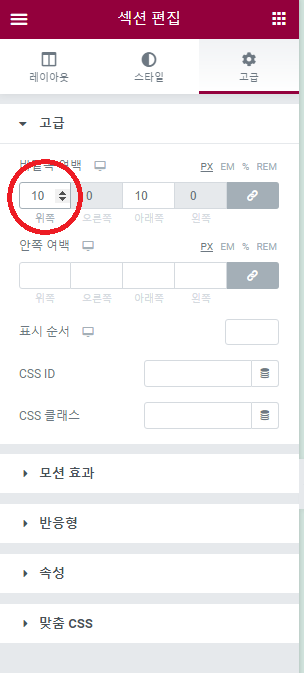 엘리멘터 shortcode 편집의 "설정" 탭으로 가시면..